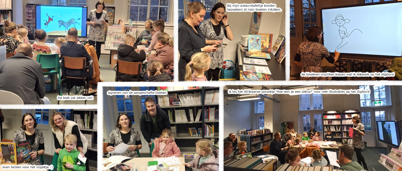 Ik kijk er met plezier op terug. Het zat goed vol en de kinderen tekenden enthousiast de tekenplaten vol. Ik las het Afrikaanse sprookje 'Hoe tem je een zebra' voor, met bijpassende illustraties op het digischerm. Kinderen én ouders luisterden geboeid.