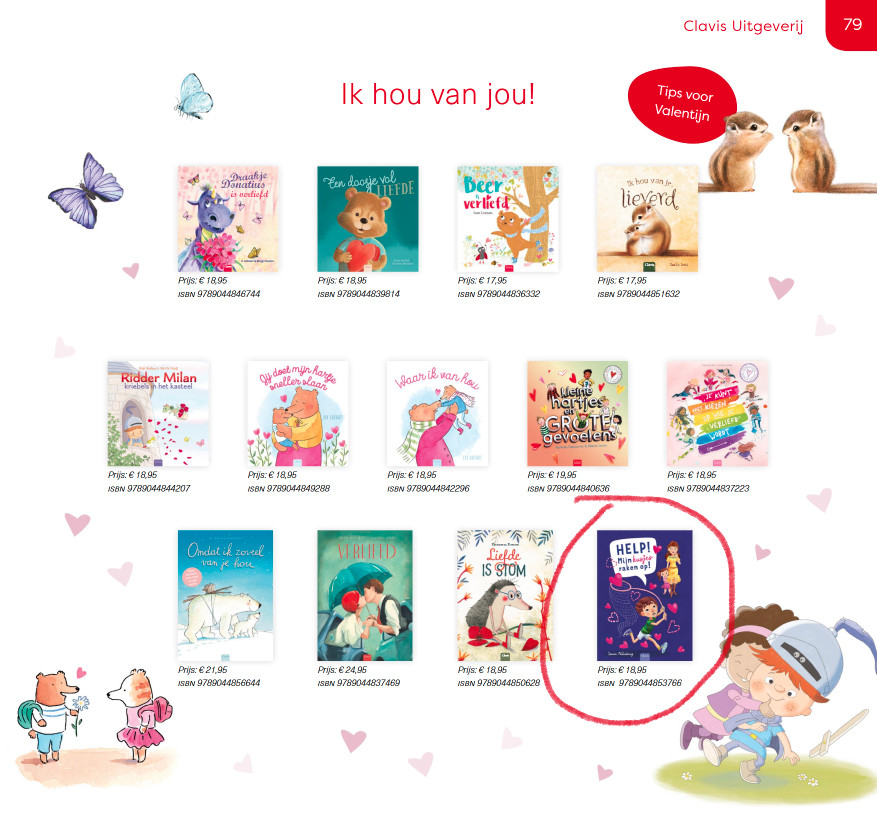 'Help! Mijn kusjes raken op!' in boekentips thema liefde brochure Clavis