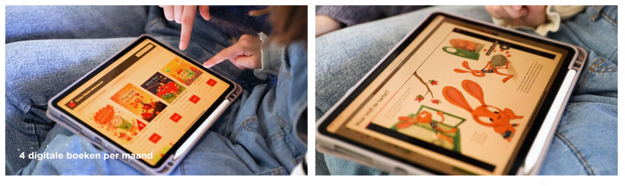 Clavis+ is een vernieuwend concept dat digitaal lezen combineert met méér (fysiek) lezen. Laat je kind leesplezier ontdekken onder begeleiding van uitgeverij Clavis. Luister hoe professionele stemmen een verhaal tot leven brengen, druk scènes uit het boek af om zelf in te kleuren, of laat je kind bijhorende knutselopdrachten uitvoeren. Het abonnement omvat ook fysieke boeken, die worden per post toegestuurd. Clavis+ ondersteunt jonge kinderen in hun ontwikkeling.