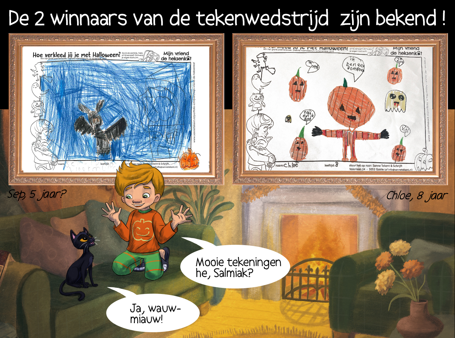 Ik gaf 2 x mijn prentenboek 'Mijn vriend de heksenkat!' weg voor de winnaars van deze leuke tekenwedstrijd.